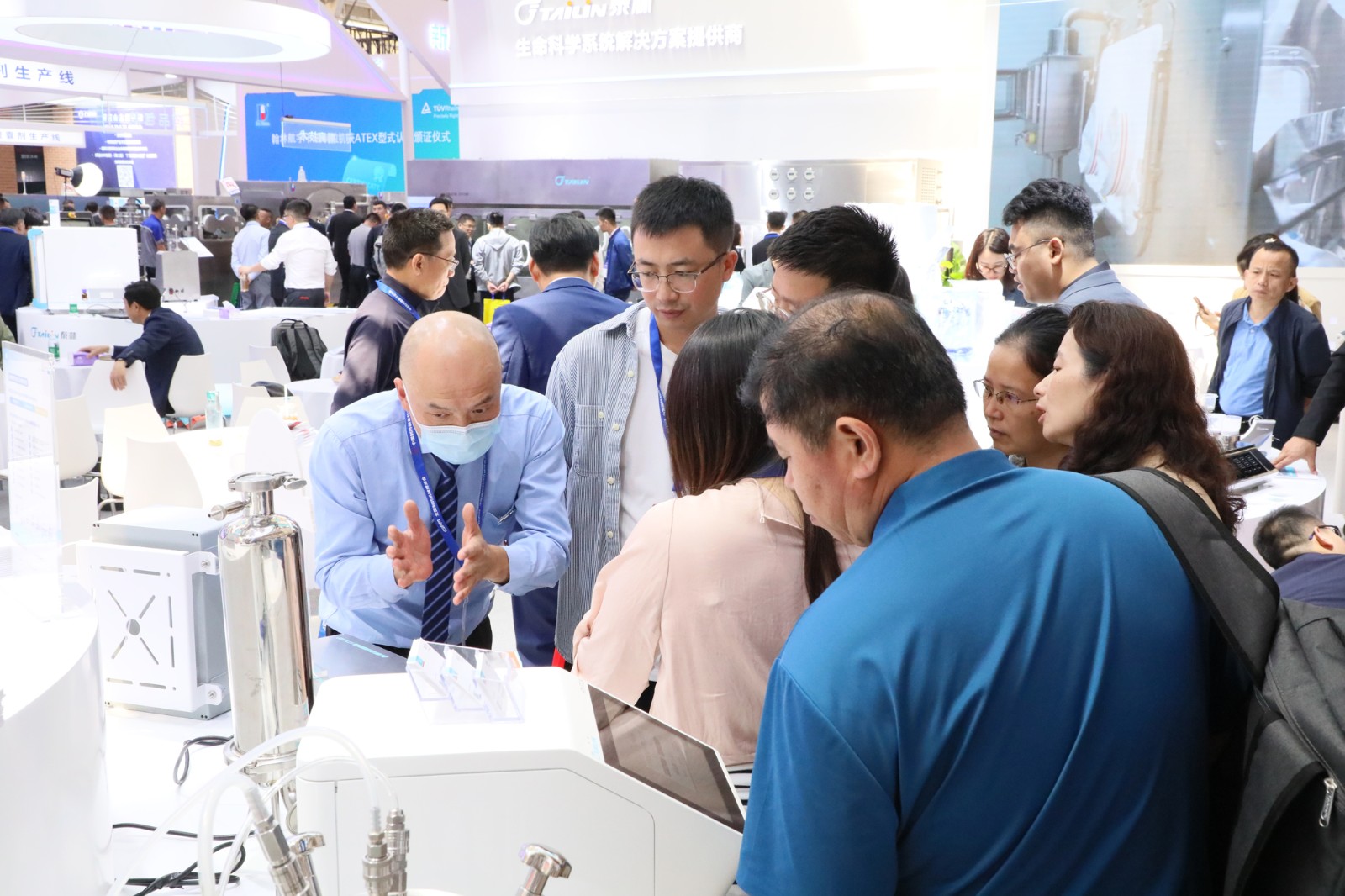 展会期间,络绎不绝的观众聚集九体育展位,我们的工作人员全程提供专业的讲解服务,与现场各位专家学者、各企事业相关人员,多角度探讨制药装备行业发展趋势和最新的技术应用,为制药生产提供更加安全、高效和可靠的建设思路。