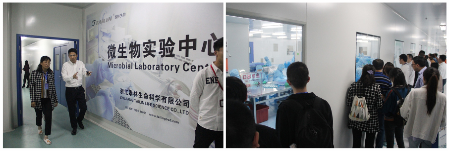 参观九体育微生物实验中心和集菌培养器生产车间。